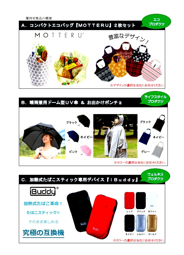 1000株以上 上記の製品A~Cより3セット(同一製品の選択も可)