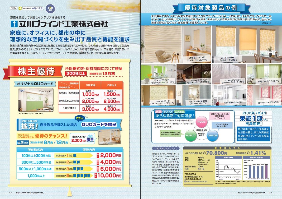 ところで、きょうは、ブラインドやロールスクリーン等インテリア製品が主力の立川ブラインド工業(7989)についてです。