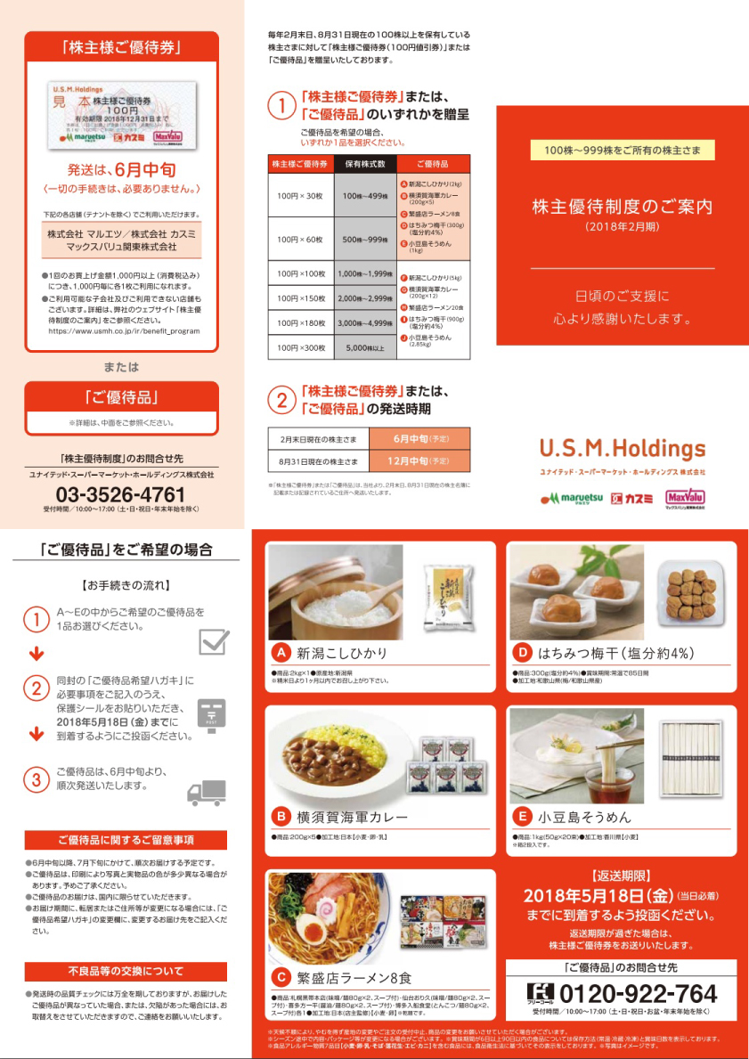 ところできょうは、イオン傘下で食品スーパー最大手のユナイテッド・スーパーマーケット・ホールディンス(3222)の株主優待案内が届いたのでそちらについてです。