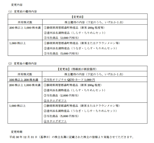 また、200株以上保有の選択品にカタログギフトを追加するということですね(*^-^*) 100株以上が新設されたことで、優待投資が従来の1/2になりますね。