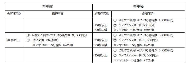 従来は、10月20日権利のみでしたが、基準日を年1回→年2回に変更し、4月20日権利を新設し、ジェフグルメカードの年間優待額を以下の通り、増額しましたね。