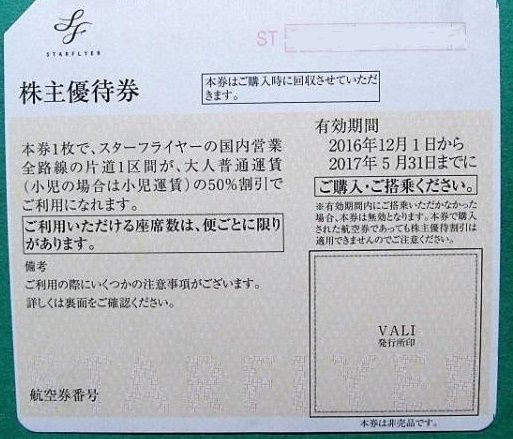 ちなみに、ANAとJALは優待券の有効期限が1年ですが、同社は6か月ですね。