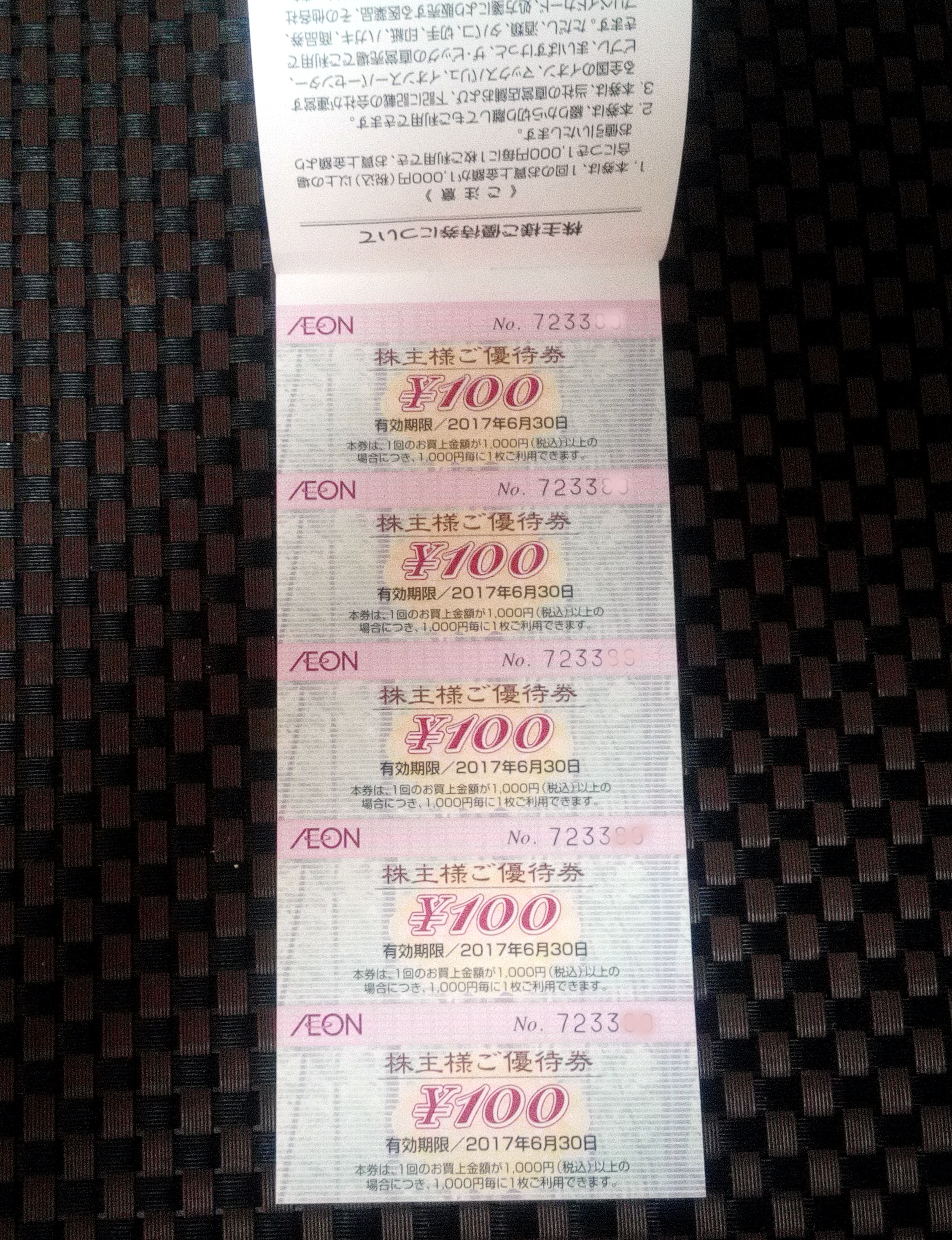 ※お買物1000円利用で優待券1枚(100円引き)が使用できます。ヤフオクで額面の90%くらいで取引されているようですね。