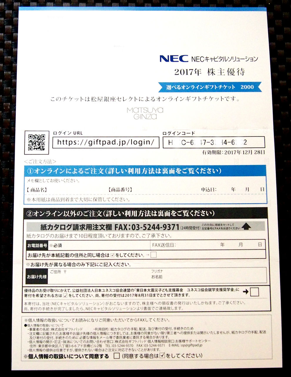 ところで、きょうは、NECキャピタルソリューション(8793)の株主優待で選択した商品が届いたのでそちらについてです。