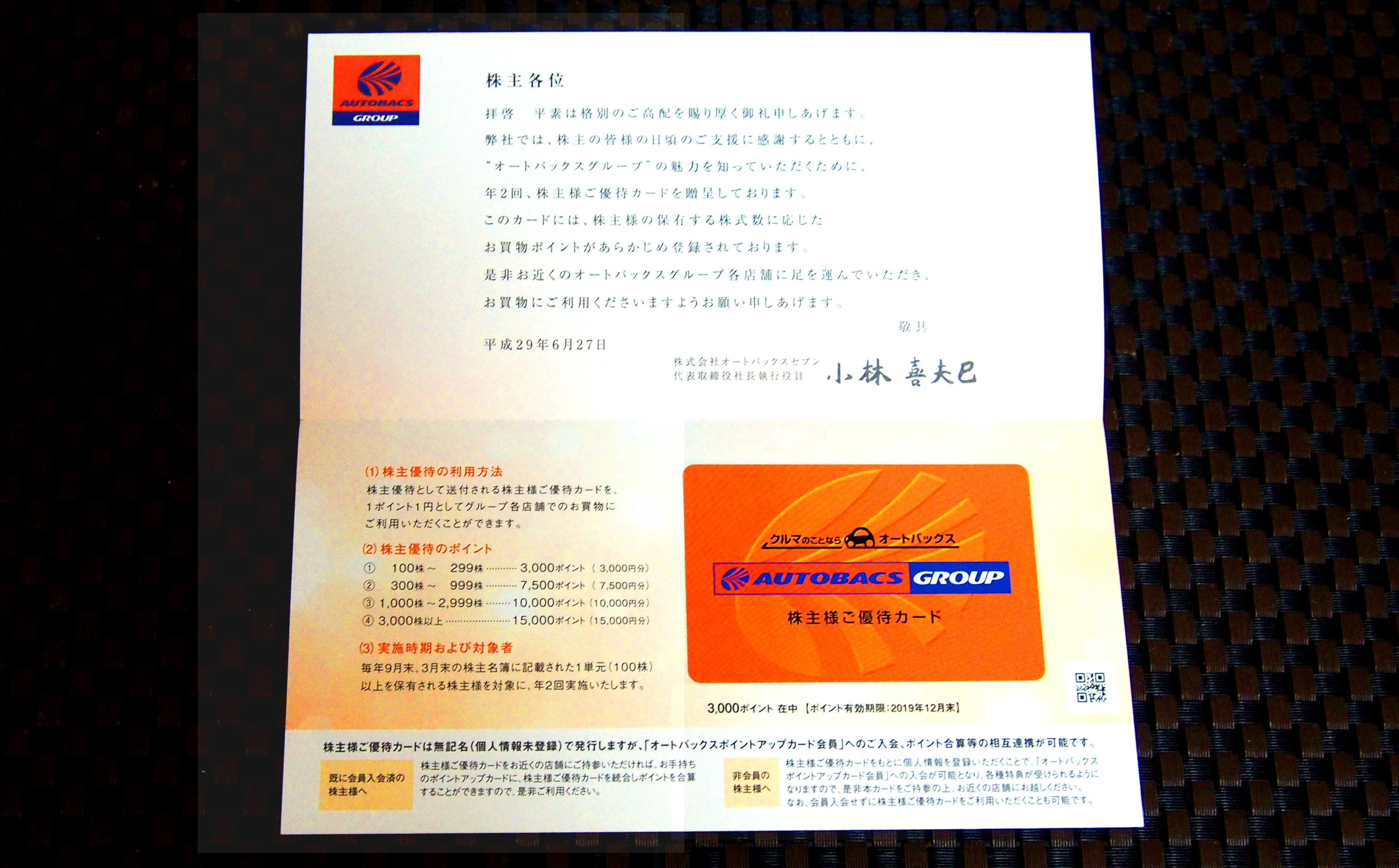 ところで、きょうは、自動車用品店の国内最大手のオートバックスセブン(9832)の株主優待カードが届いたのでそちらについてです。