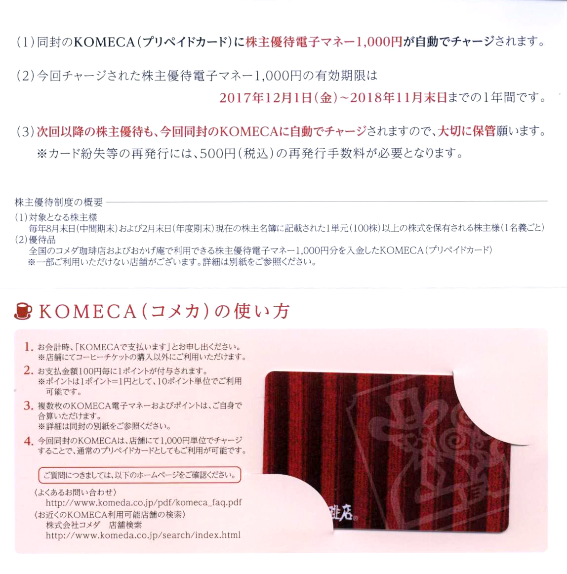 また、昨年8月権利分から、「KOMECA」のカードを毎回贈呈するのを止め、1枚の「KOMECA」を継続利用する形