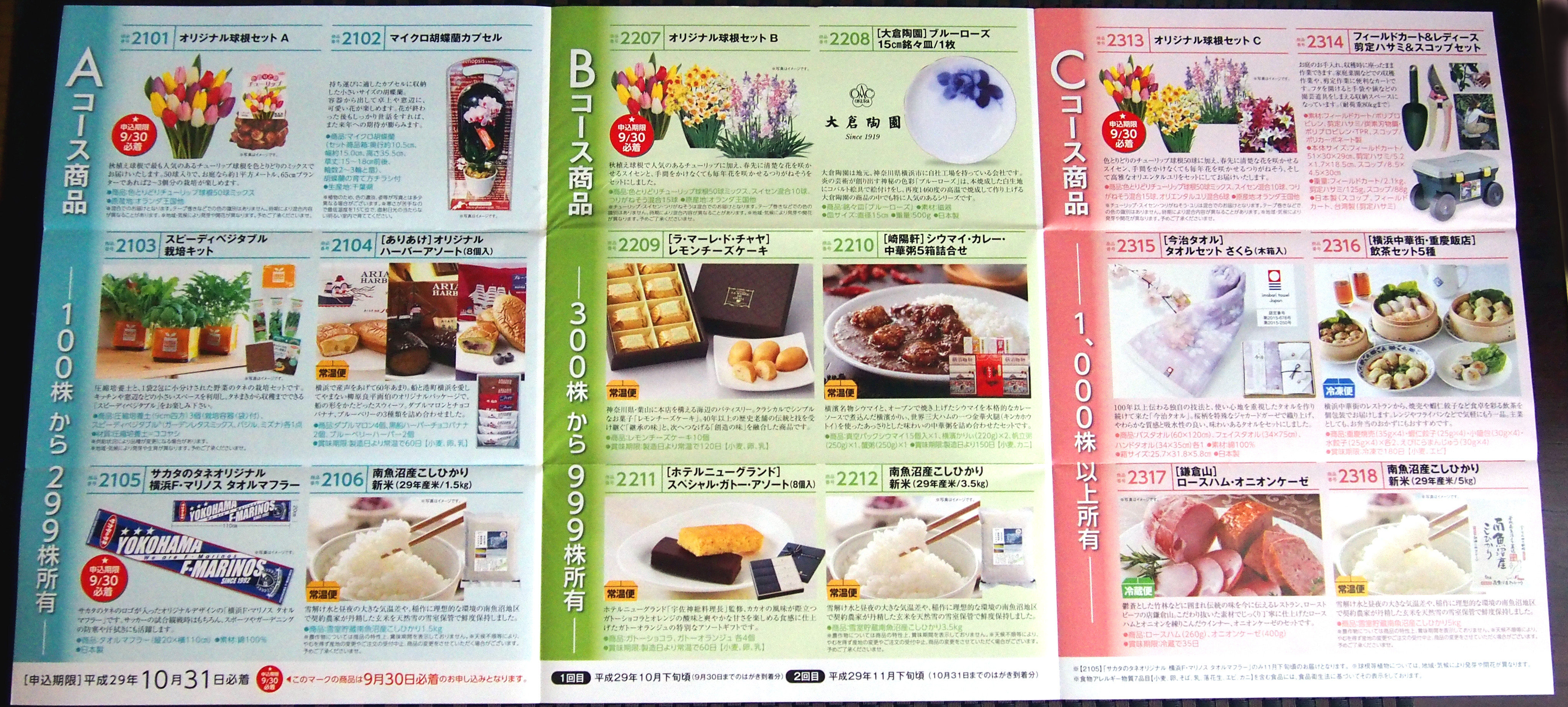 優待内容は、5月末権利で、カタログギフト→100株以上、300株以上、1000株以上で、それぞれ商品が選択できるかたちですね(*^-^*)