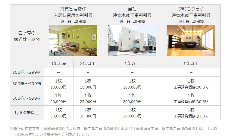 まず、優待の内容は、100株以上でレオパレス・リゾートホテル(グアム)無料宿泊券が2枚と国内ホテル50%宿泊割引券2枚のセットが基本ですね(*^-^*)