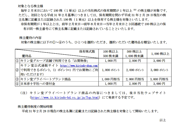 一方、優待は6月20日権利で、100株以上→2500円分、1000株以上→5000円分の自社またはグループ会社商品ですね。