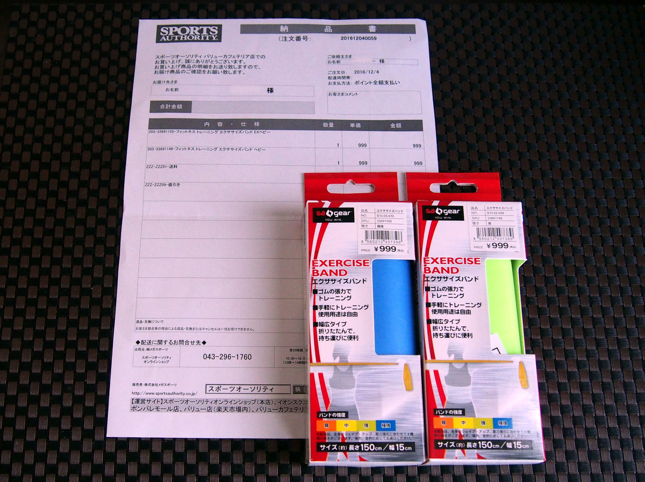 そして今回、僕はまずスポーツオーソリティの商品からエクササイズバンド(ゴムチューブ極強と強の2つ)を選びました。持っていたいたものがいきなり切れたのでトレーニング用に購入しました。