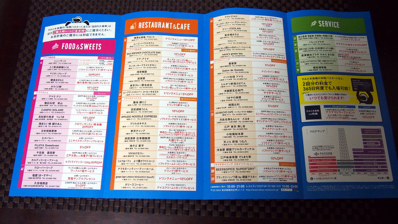 中も意外と広く、大水槽やペンギンもたくさんいて癒されました(*^-^*) さらに、すみだ水族館の年間パスポート会員になると、東武動物公園に入場できたり、ソラマチでの飲食・買い物に様々な割引・特典が付いていきます(^^)/