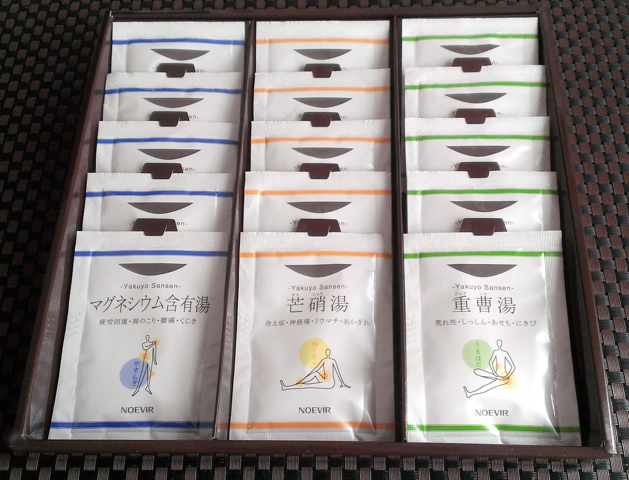 温泉が好きで全国いろいろなところに行くんですが、入浴剤も好きでちょこちょこ集めてるんですね。15回分あります(^^)