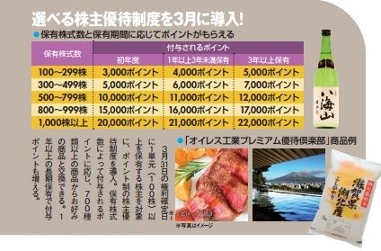 毎年3月末日時点で100株以上を保有する株主に、保有株数と継続保有期間に応じて、特設サイトで食品や電化製品などと交換できるポイントを付与するとしました。100株以上→1年未満:3000ポイント、300株以上→1年未満:5000ポイント・・・等々ですね(*^-^*)