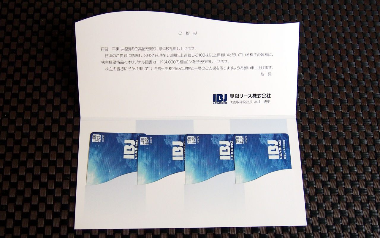 ところで、きょうは、みずほ系の大手総合リース会社で高額図書カード優待として有名な興銀リース(8425)の株主優待が届いたのでそちらについてです。