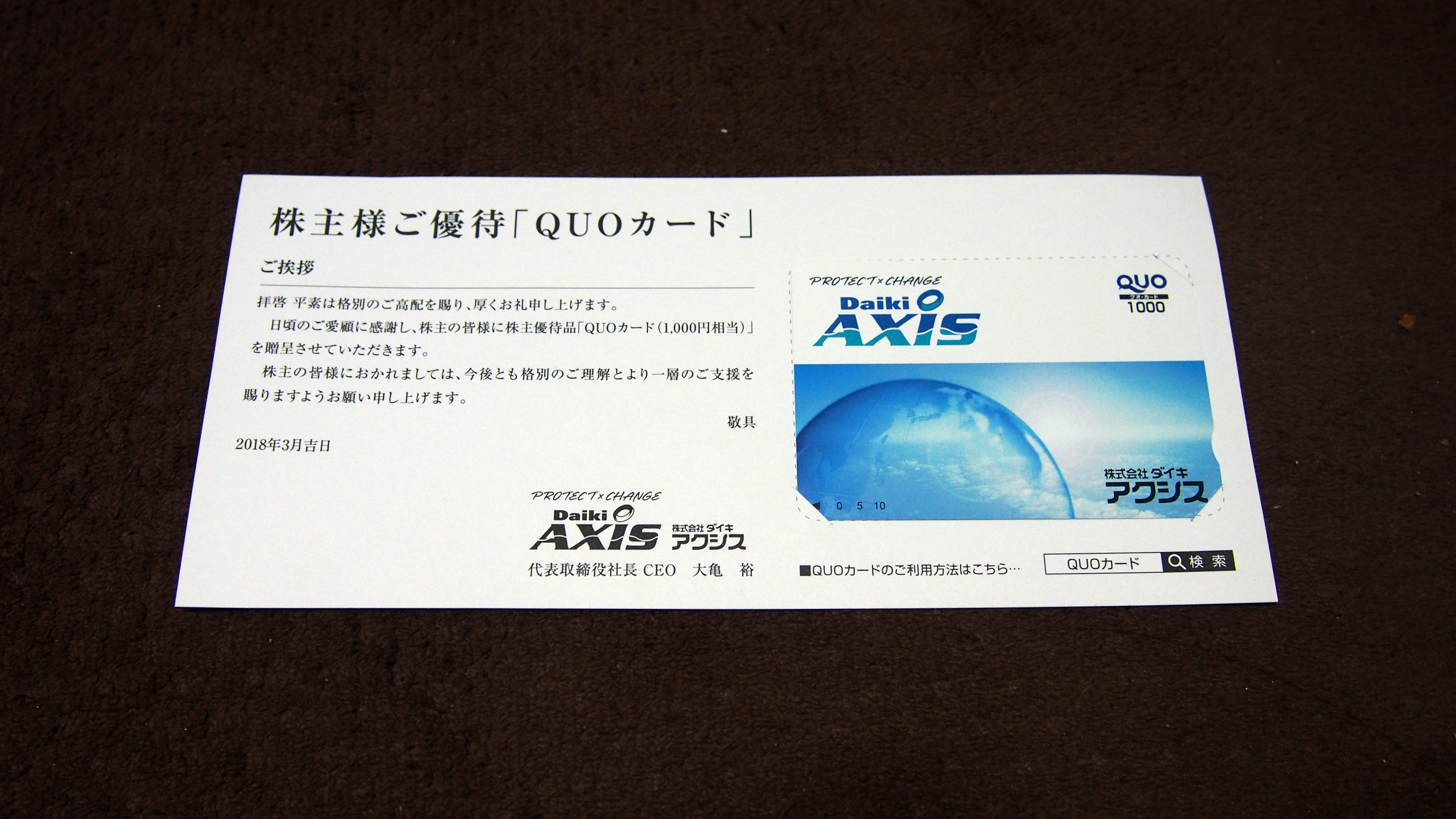 まず、同社の優待の内容は、年2回、12月と6月権利で、100株以上→クオ・カード500円分、1000株以上→同1000円分ですね(*^-^*)