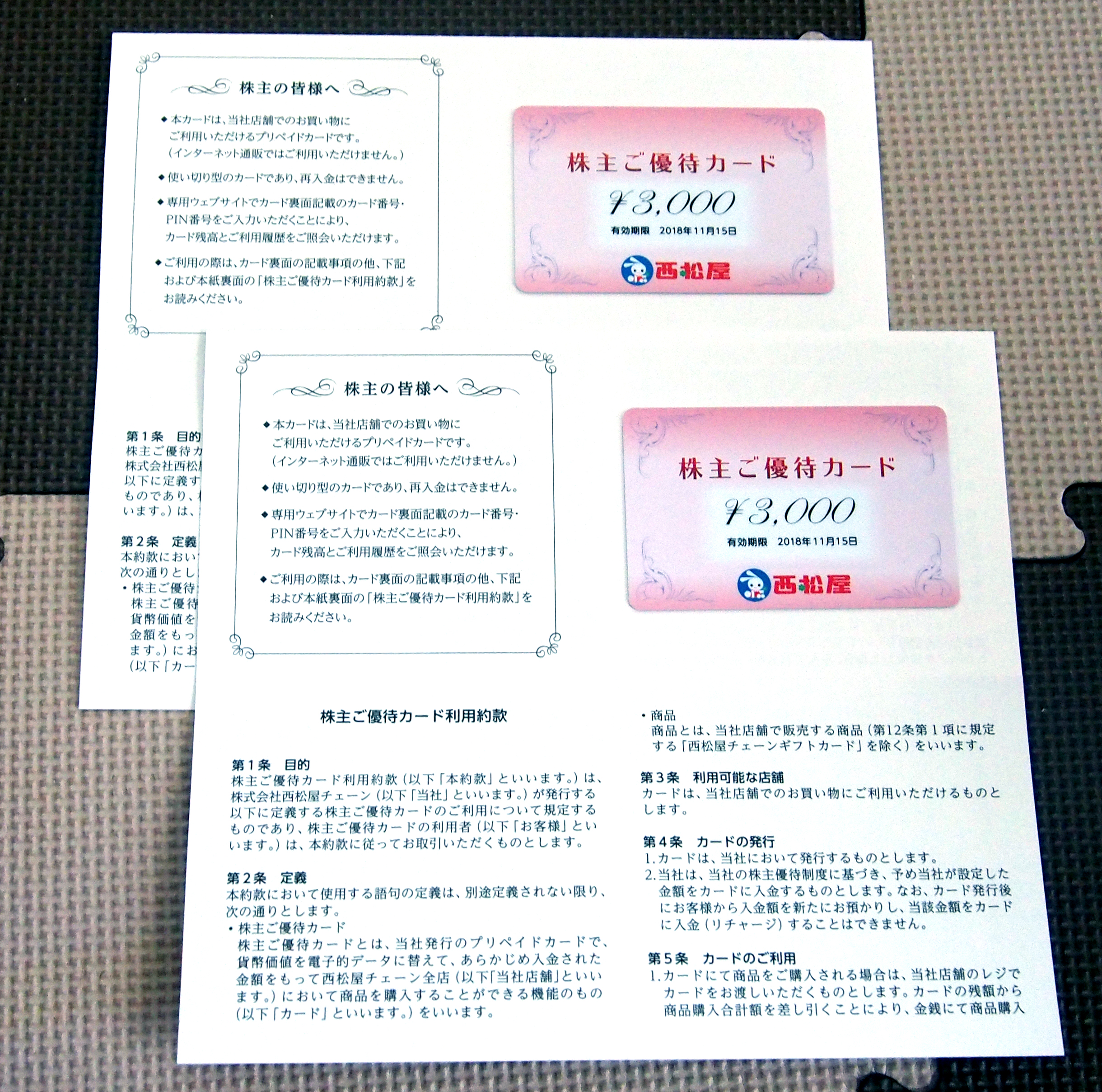 ●従来、優待金額相当の金券「株主ご優待券」をお買物券として贈呈しておりましたが、2017年8月20日現在の100株以上保有の株主様への贈呈分より、優待金額を入金(チャージ)したプリペイドカード「株主ご優待カード」(※1)を贈呈いたします。