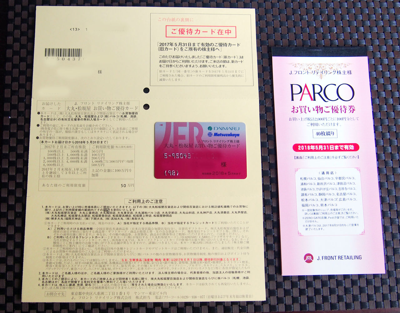 あと、パルコで利用できる優待券(2000円利用で100円引き×40枚、8月末権利分は20枚)も付きます。