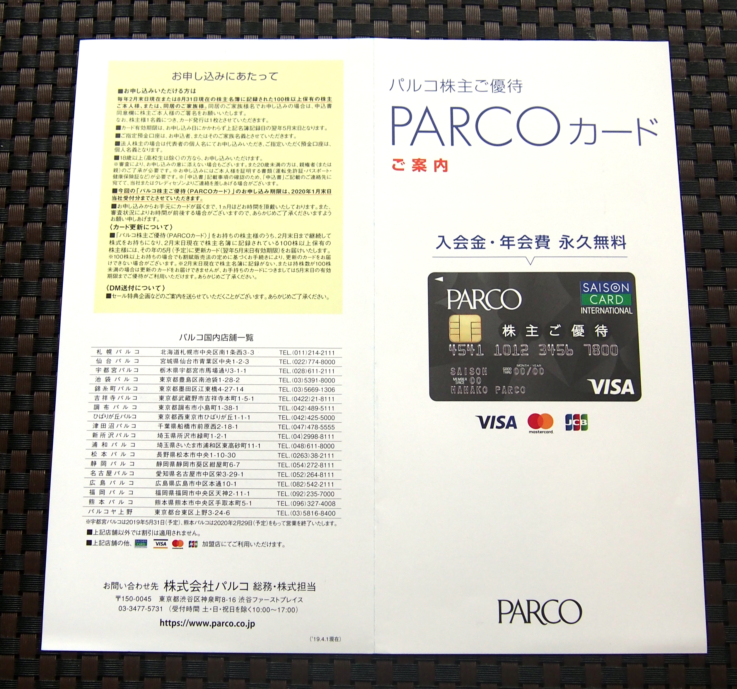 2019年秋から、株主優待以外の通常のPARCOカード(クレジットカード)はポイント制に移行しますが、PARCOカードクラスS(株主優待専用クレジットカード)は変わらず5%オフ割引が引き続き適用になりますね(毎月第3・第4土曜日は10%オフ)。